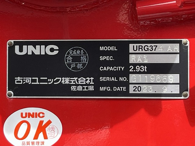 | 仕様 | ユニック URG374AH 4段ラジコン フックイン付 2.9t 床フック5対 ウインチ付 リターダ付(E/G式) [ワイド] | |||||||||||||||||||||||||||||