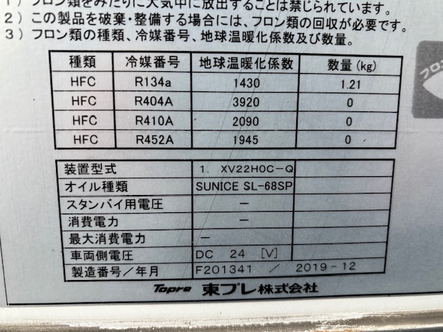 | 仕様 | 東プレ XV22H0C-Q -5℃設定 2時間で-5.5℃確認済(3月測定) 床形状:ステンフラット S/D付(幅820mm×高1620mm) ETC付 バックカメラ付 | |||||||||||||||||||||||||||||