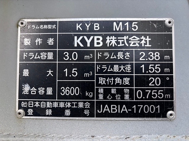 | 仕様 | ドラム容積:3m3 最大混合容量:1.5m3 ホッパーカバー有 | |||||||||||||||||||||||||||||